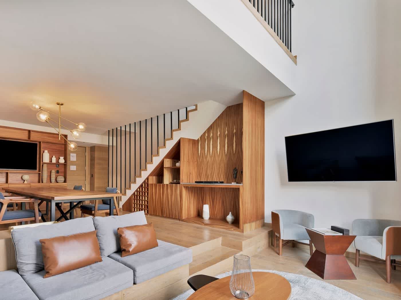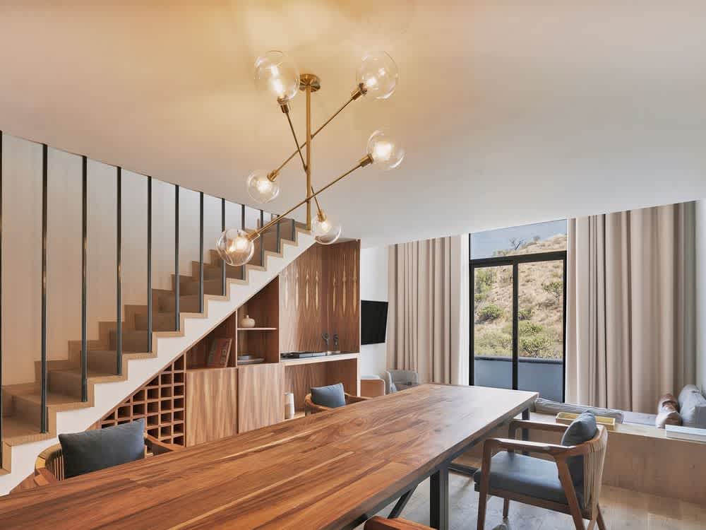 Come and live the experience of luxury and exclusivity in this spacious and imposing residence, which raises the level of stay in our resort by offering an exceptional space to provoke all your senses. For as long as you want, make this your favorite refuge, with the privacy and services that only a cosmopolitan traveler deserves. Perfect to share with family or friends, enjoy the cultural beauty of San Miguel de Allende, which permeates the atmosphere of our residence, with glimpses of its colonial past, mixed with a daring expression of contemporary design and art. Divided into two exquisitely decorated floors, it has two rooms, each with its own bathroom, a half bathroom for visitors and independent entrances. Enjoy the best of entertainment on Smart TVs. Pamper yourself with our Molton Brown amenities. In addition, it has a Nespresso coffee machine for your delight. In addition to this, a dining room for six people, as well as an ideal room to enjoy the beautiful views of the Obraje Dam and our pool of sensations, making your stay, full of fine details and unbeatable attention, a true sensory experience.