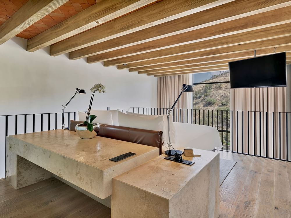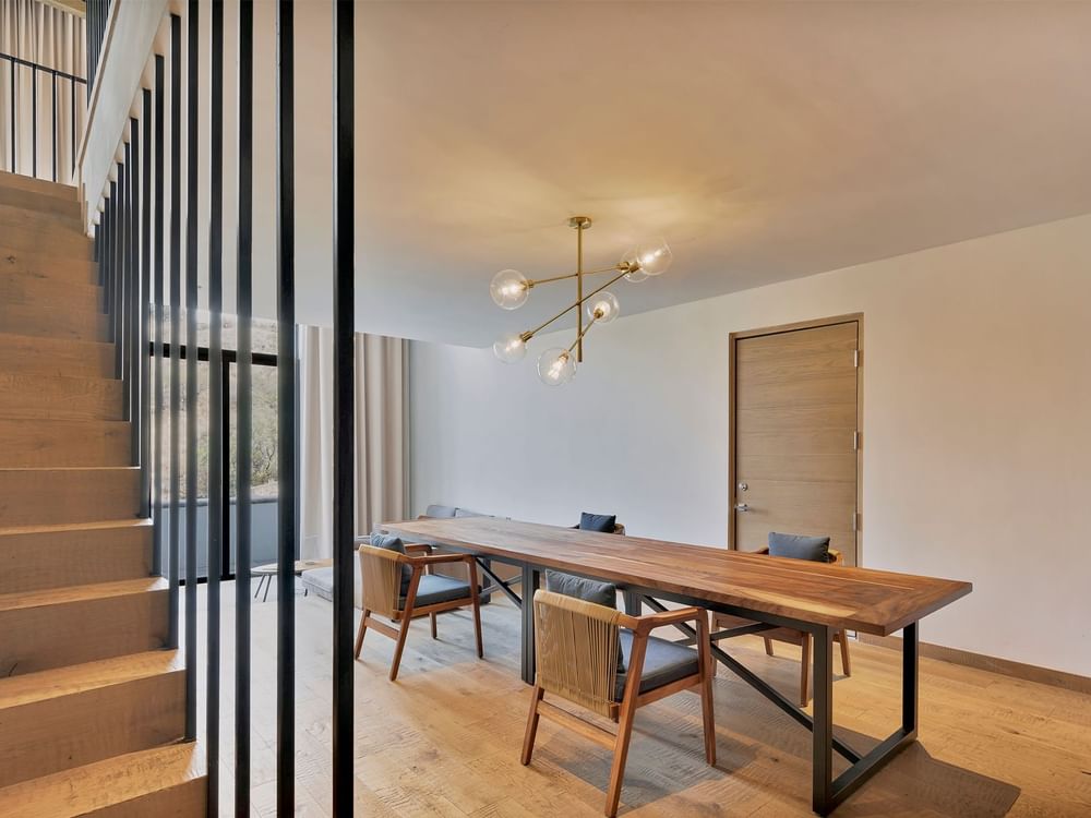 Come and live the experience of luxury and exclusivity in this spacious and imposing residence, which raises the level of stay in our resort by offering an exceptional space to provoke all your senses. For as long as you want, make this your favorite refuge, with the privacy and services that only a cosmopolitan traveler deserves. Perfect to share with family or friends, enjoy the cultural beauty of San Miguel de Allende, which permeates the atmosphere of our residence, with glimpses of its colonial past, mixed with a daring expression of contemporary design and art. Divided into two exquisitely decorated floors, it has two rooms, each with its own bathroom, a half bathroom for visitors and independent entrances. Enjoy the best of entertainment on Smart TVs. Pamper yourself with our Molton Brown amenities. In addition, it has a Nespresso coffee machine for your delight. In addition to this, a dining room for six people, as well as an ideal room to enjoy the beautiful views of the Obraje Dam and our pool of sensations, making your stay, full of fine details and unbeatable attention, a true sensory experience.