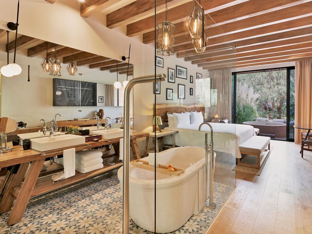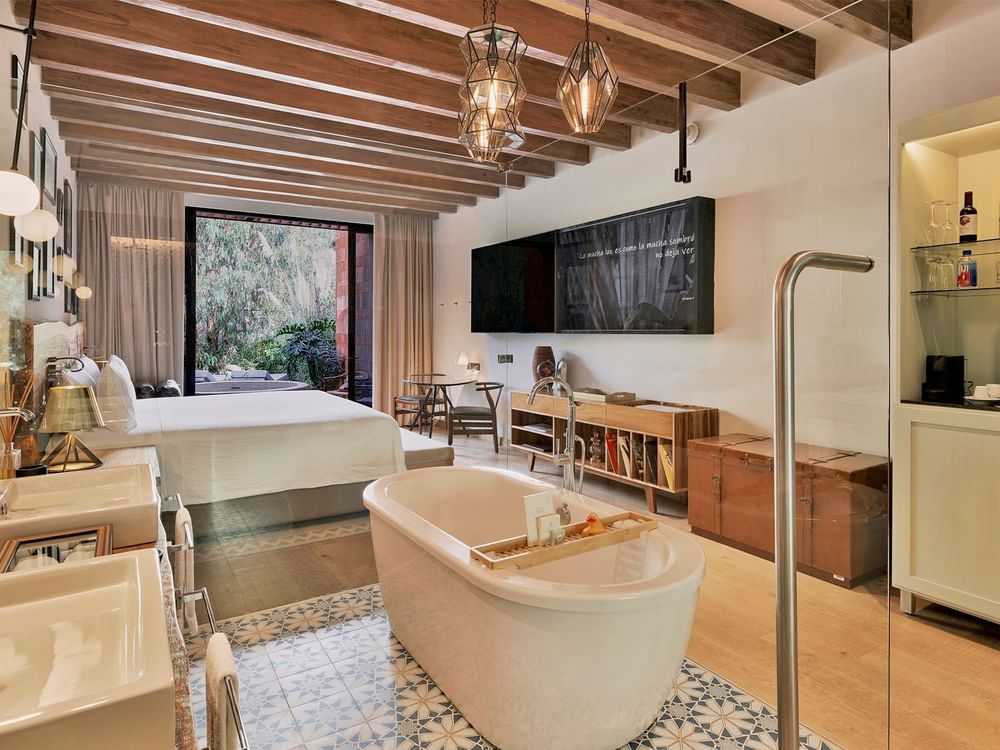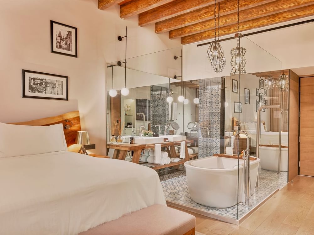 Everything is designed for you to focus on yourself. Your stay will be unforgettable in this elegant and contemporary suite. Enjoy full rest on a spacious bed with a soft mattress, 400-thread-count designer sheets. A fragrance from our reed diffuser will create the right atmosphere for your relaxation. In the bathroom you will find spaces and details to pamper yourself, as well as a full-length mirror with three angles. Enjoy the best of entertainment on your 58-inch Smart TV. Pamper yourself with our Molton Brown amenities. In addition, this room has a Nespresso coffee machine for your convenience.