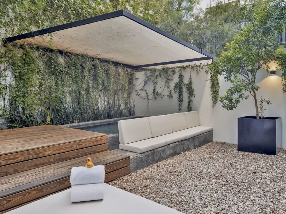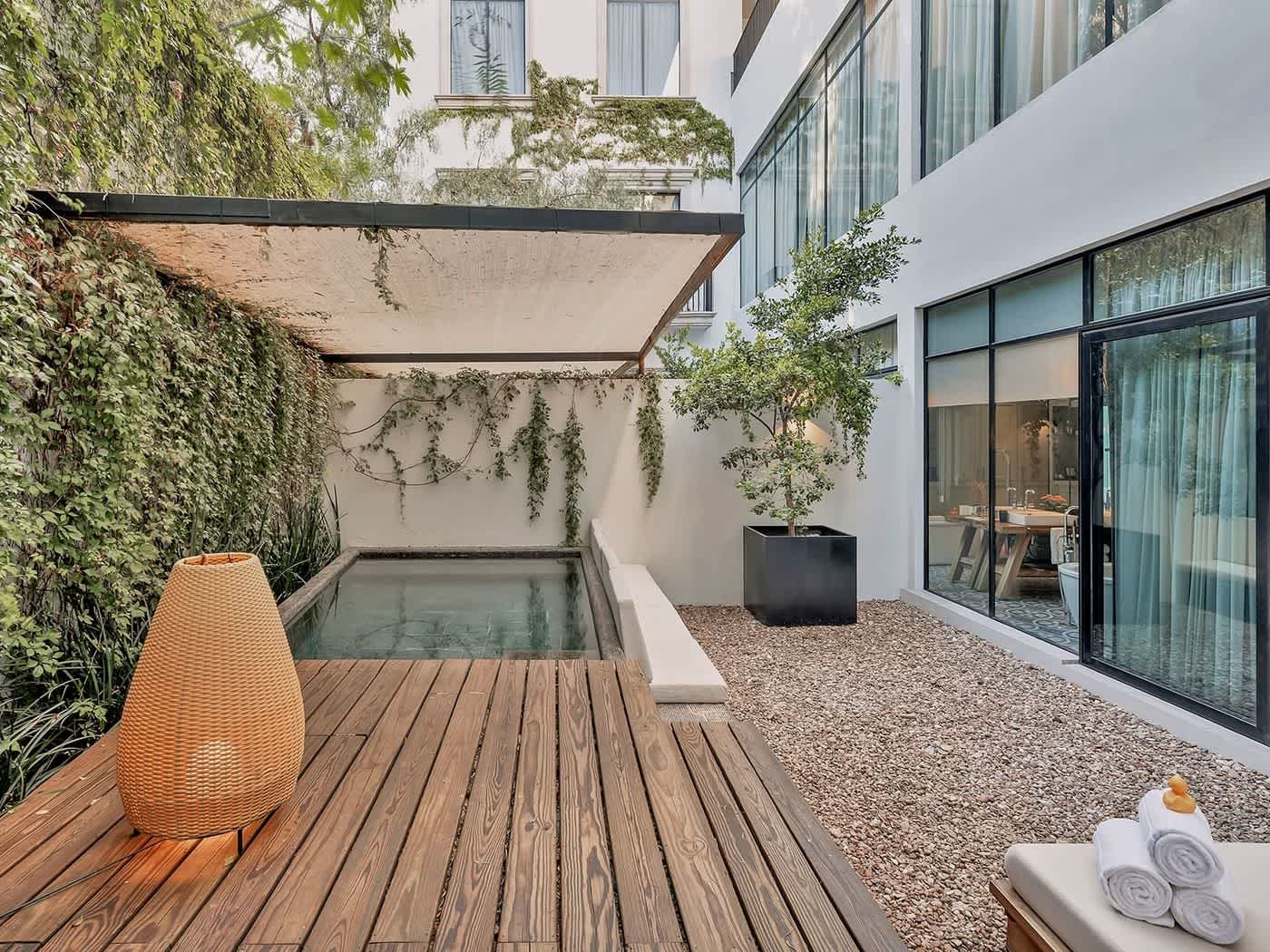 Focus on your own rest as tranquility is ensured in this room. Ergonomic spaces with a contemporary and sophisticated design will make you feel in a relaxed space. Create your own environment with an essence from our reed diffuser. Wrap yourself in the soft bed with a feather mattress and 400 thread count sheets. The bathroom offers views of the room and has a separate tub from the shower. There is also an outdoor stay next to the plunge pool. Enjoy the best of entertainment on your 58-inch Smart TV. Pamper yourself with our Molton Brown amenities. In addition, this room has a Nespresso coffee machine for your convenience.
